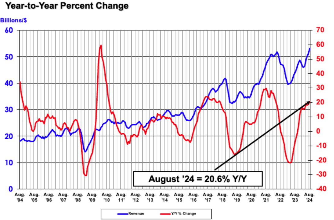 Sales hit highest-ever recorded numbers for the month of August; worldwide chip sales increase 3.5%...